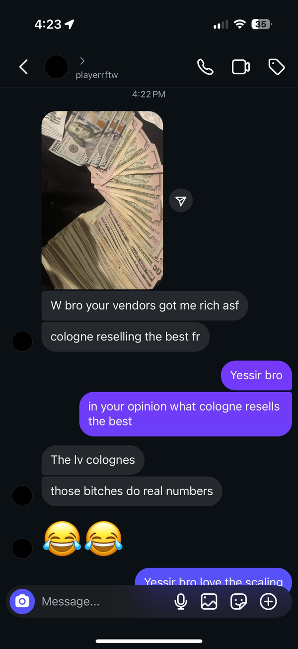 "The All vendor bundle was def worth it these shoes and cologne making me tons of money first month make 2.7k this week of them 10k next month"